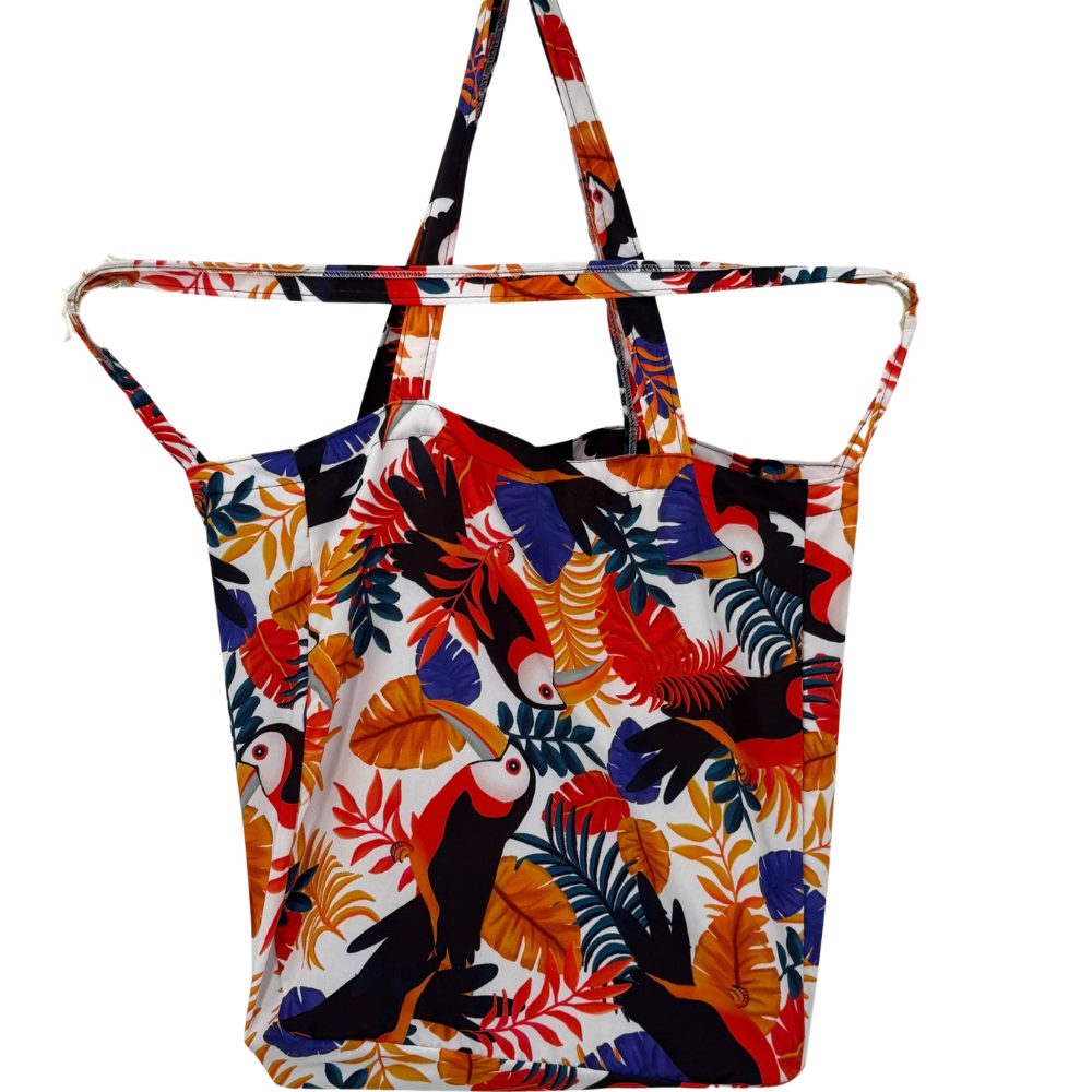 A Bolsa Estampada Tropical Tucano é perfeita para quem gosta de estilo, praticidade e cores vibrantes. Com uma estampa inspirada na natureza tropical, trazendo tucanos e folhagens coloridas, ela adiciona personalidade e alegria a qualquer look.