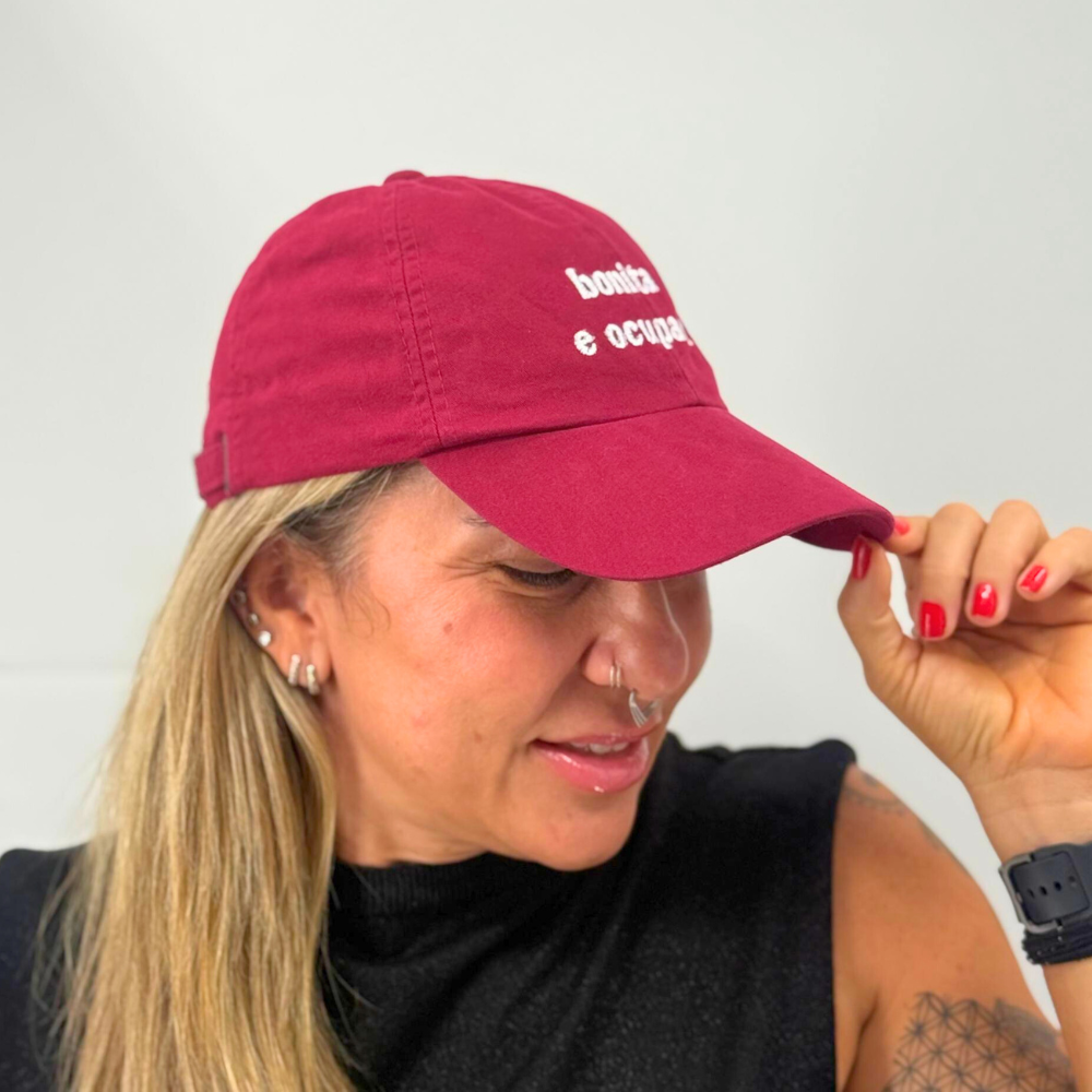 Boné Bordado Ajustável Identidade Carioca – "Bonita e Ocupada" (Roxo)