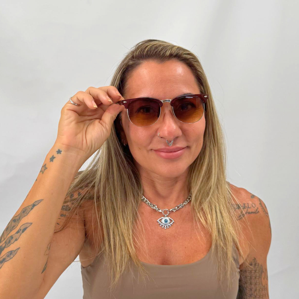 O Óculos é a escolha ideal para quem busca um visual elegante e atemporal. Com armação em tom marrom sofisticado e lentes em degradê, ele combina perfeitamente com diferentes estilos, trazendo equilíbrio entre discrição e estilo.